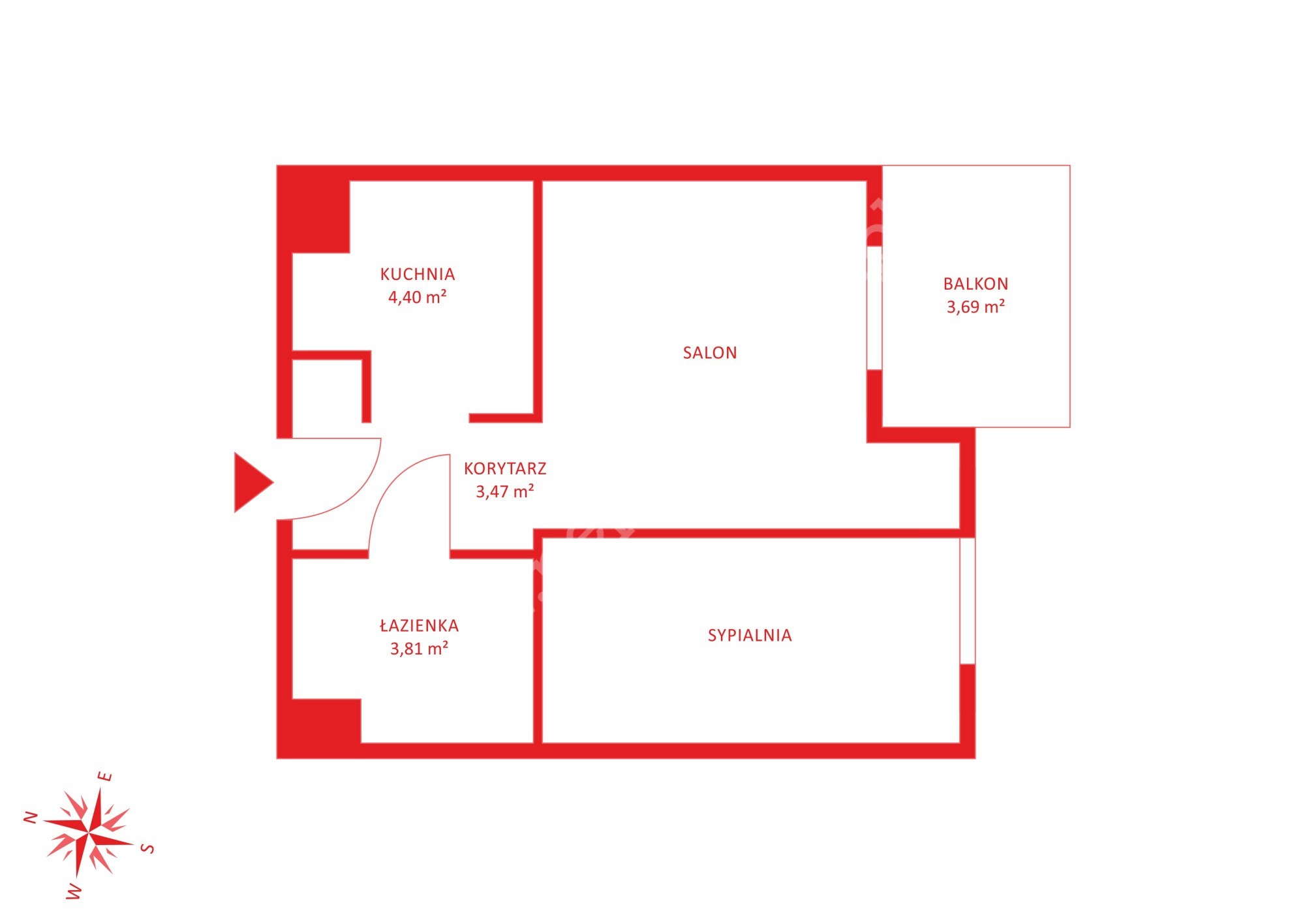 Mieszkanie o powierzchni 32m2 składa się z: