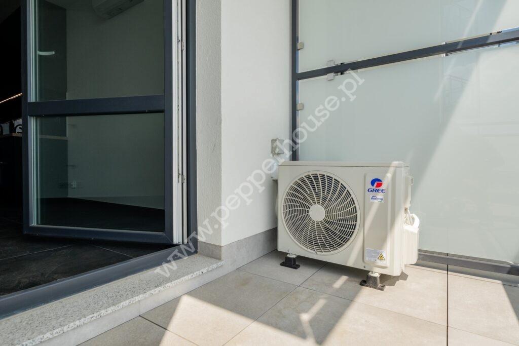 Każde z pomieszczeń zostało wykończone w wysokim standardzie, z dbałością o wykorzystanie dobrej jakości materiałów. Nieruchomość wyposażono w niezbędny sprzęt AGD. O komfort mieszkańców dba również zainstalowana klimatyzacja.