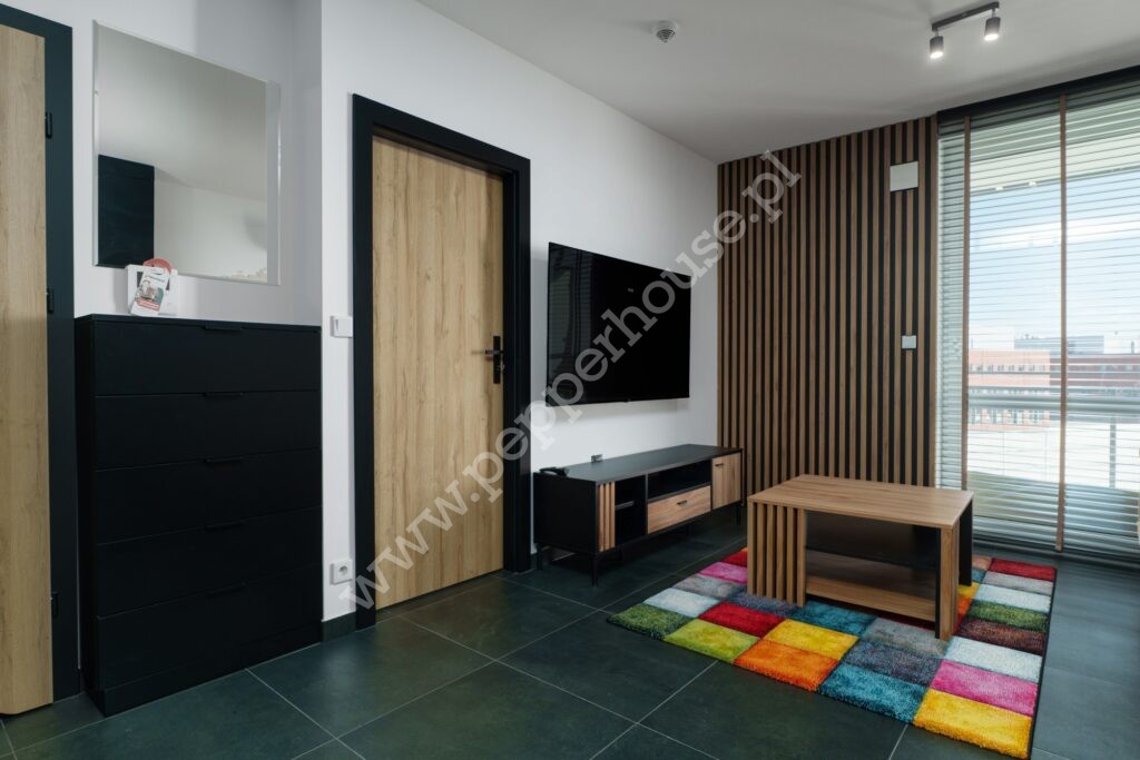 Nieruchomość mieści się na V piętrze siedmiopiętrowego, nowoczesnego bloku. Części wspólne zostały wykończone w wysokim standardzie, do dyspozycji mamy nie tylko reprezentacyjne lobby, ale również siłownię, przechowalnię bagażu, pralnię, saunę do dyspozycji mieszkańców. O bezpieczeństwo mieszkańców dba całodobowa ochrona oraz monitoring.