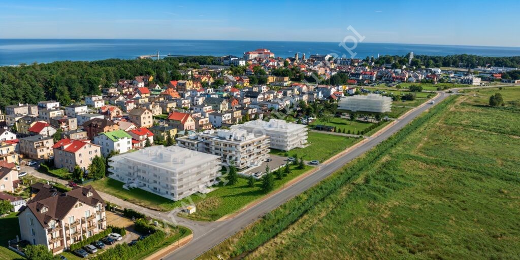 Działka znajduje się w odległości około 800 metrów od Morza Bałtyckiego, co zapewnia łatwy dostęp do szerokiej, piaszczystej plaży, a jednocześnie pozwala zachować komfort i spokój poza bezpośrednim pasem nadmorskim. W sąsiedztwie zlokalizowane są nowoczesne apartamenty, obiekty noclegowe oraz infrastruktura usługowa związana z obsługą ruchu turystycznego.