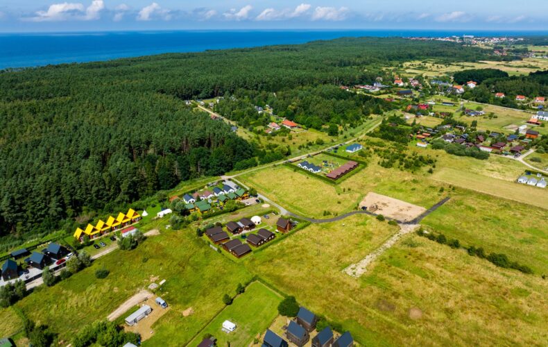 – w pobliżu znanego i cenionego przez turystów Jarosławca, wraz z dużą plażą zwaną „Polskim Dubajem”,